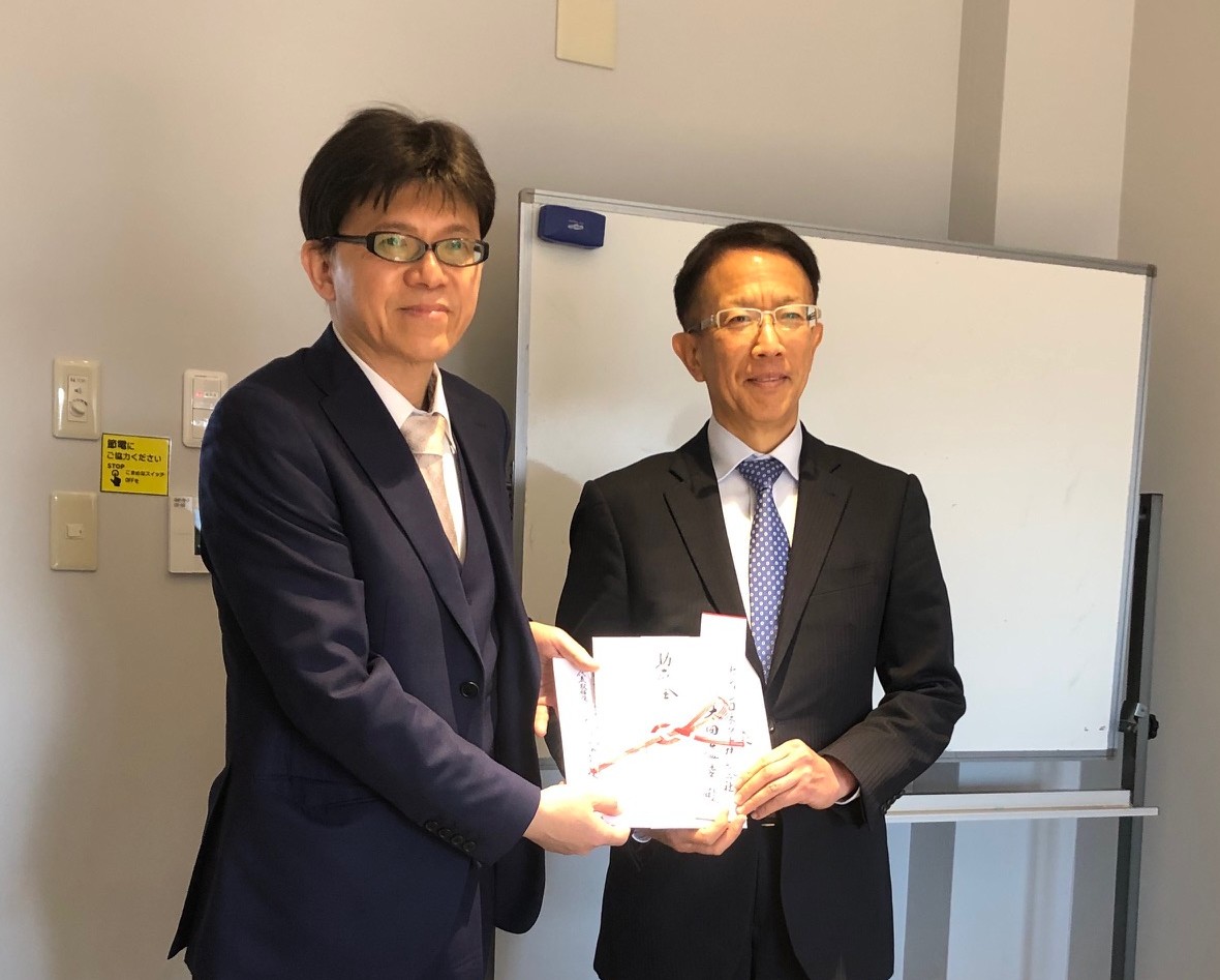 令和7年12月16日(火)に、北國銀行 代表取締役会長 多田隆保様 本店営業部長 佐々木謙志様 北國銀行産業振興財団理事 宮野雅明様にご来社いただき、目録の授与をいただきました。
